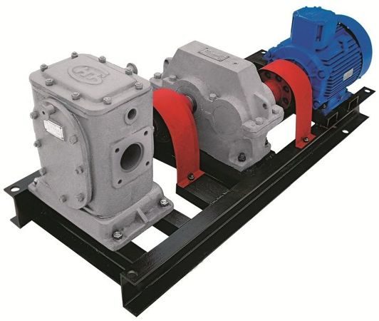 Установка представляет собой сварную рамную конструкцию с установленными битумным насосом и асинхронным электродвигателем с короткозамкнутым ротором переменного тока общепромышленного либо взрывозащищённого исполнения, редуктором цилиндрическим одноступенчатым, соединённых между собой муфтами.